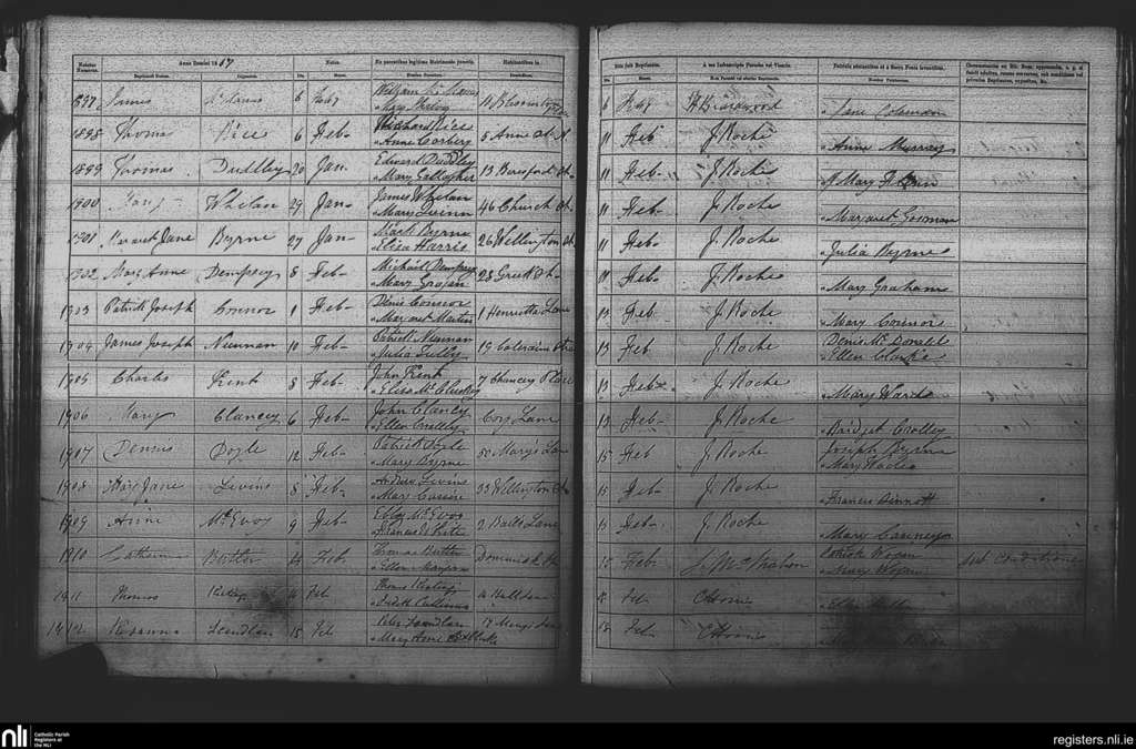 St. Michan's, Dublin city; County of Dublin; Archdiocese of Dublin. Baptisms, Feb. 1867