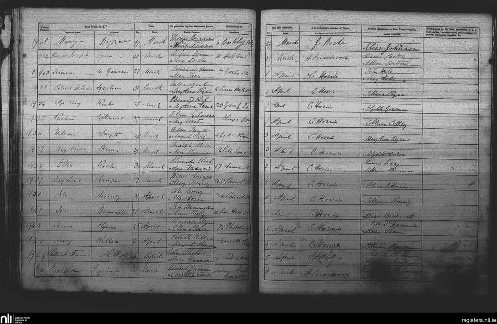 St. Michan's, Dublin city; County of Dublin; Archdiocese of Dublin. Baptisms, Mar. 1867 to Apr. 1867