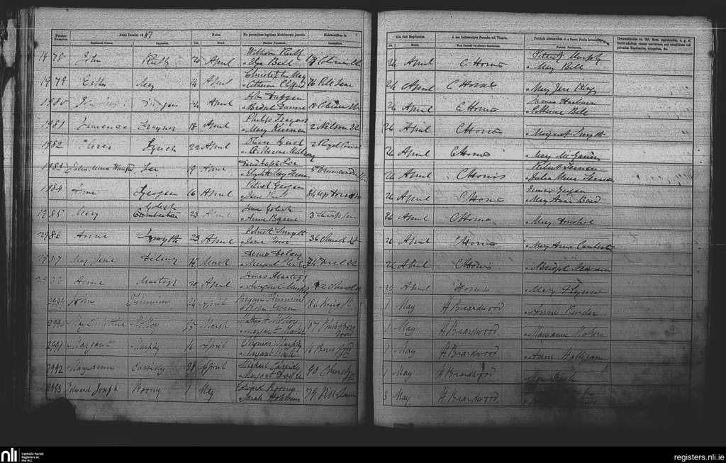 St. Michan's, Dublin city; County of Dublin; Archdiocese of Dublin. Baptisms, Apr. 1867 to May 1867