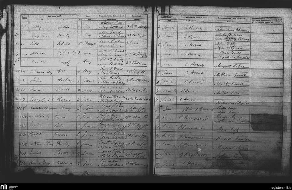 St. Michan's, Dublin city; County of Dublin; Archdiocese of Dublin. Baptisms, June 1867
