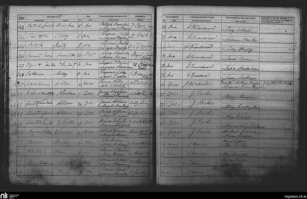 St. Michan's, Dublin city; County of Dublin; Archdiocese of Dublin. Baptisms, Dec. 1867