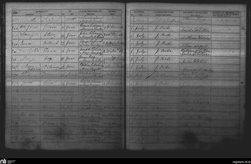St. Michan's, Dublin city; County of Dublin; Archdiocese of Dublin. Baptisms, June 1868 to July 1868