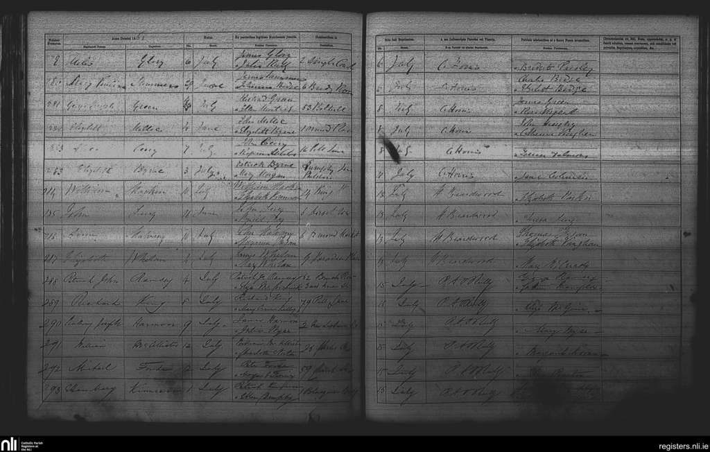 St. Michan's, Dublin city; County of Dublin; Archdiocese of Dublin. Baptisms, July 1868