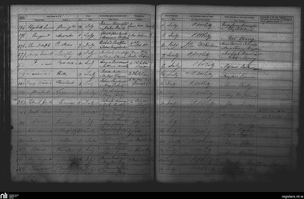 St. Michan's, Dublin city; County of Dublin; Archdiocese of Dublin. Baptisms, July 1868