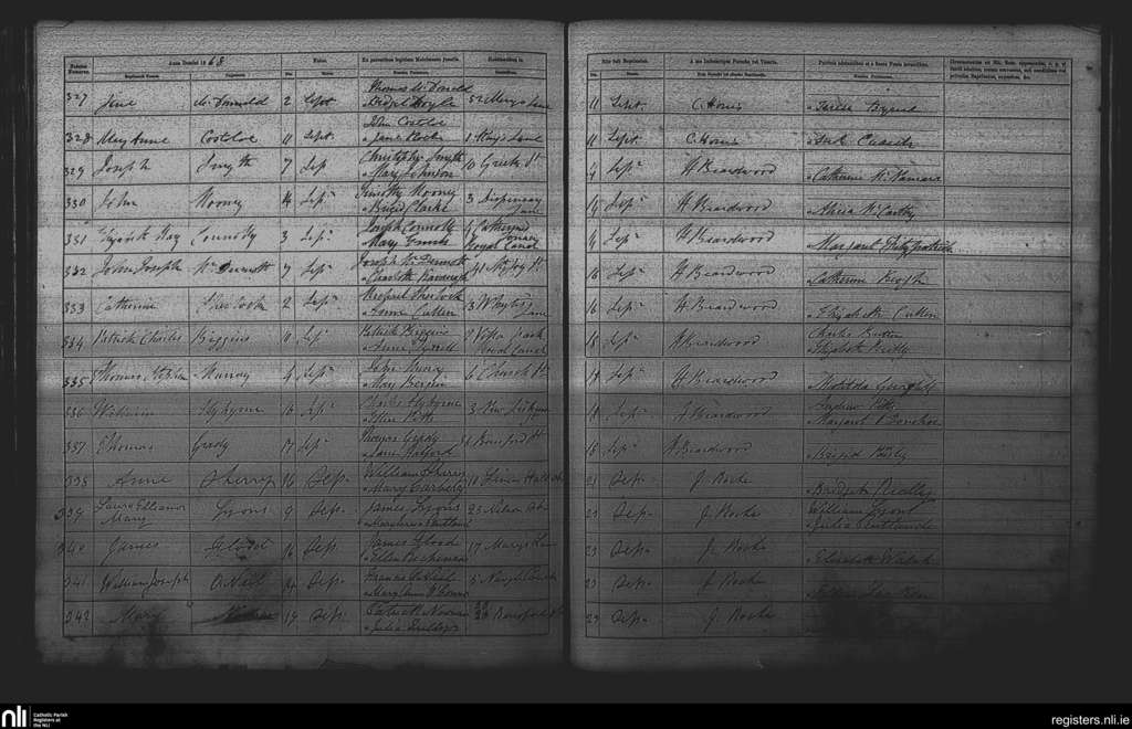 St. Michan's, Dublin city; County of Dublin; Archdiocese of Dublin. Baptisms, Sep. 1868