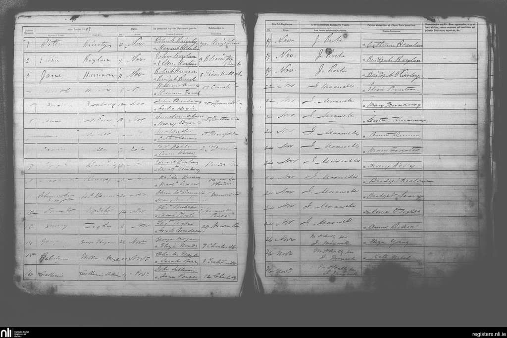 St. Michan's, Dublin city; County of Dublin; Archdiocese of Dublin. Baptisms, Nov. 1869