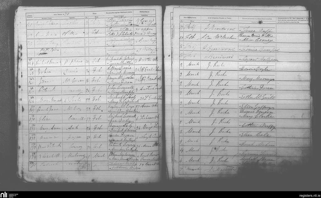 St. Michan's, Dublin city; County of Dublin; Archdiocese of Dublin. Baptisms, Feb. 1870 to Mar. 1870