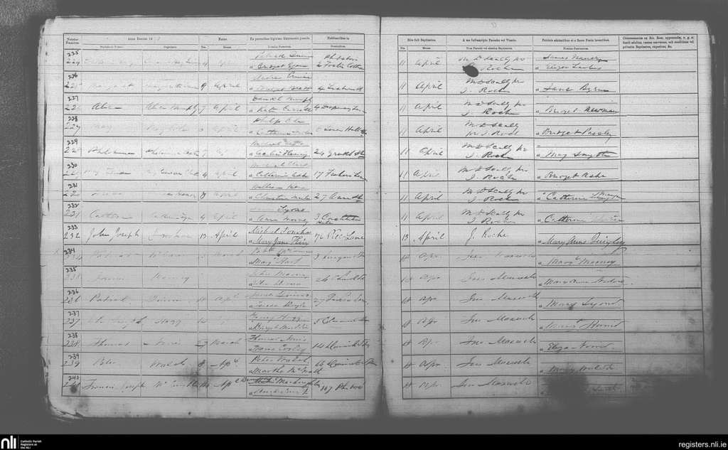 St. Michan's, Dublin city; County of Dublin; Archdiocese of Dublin. Baptisms, Apr. 1870