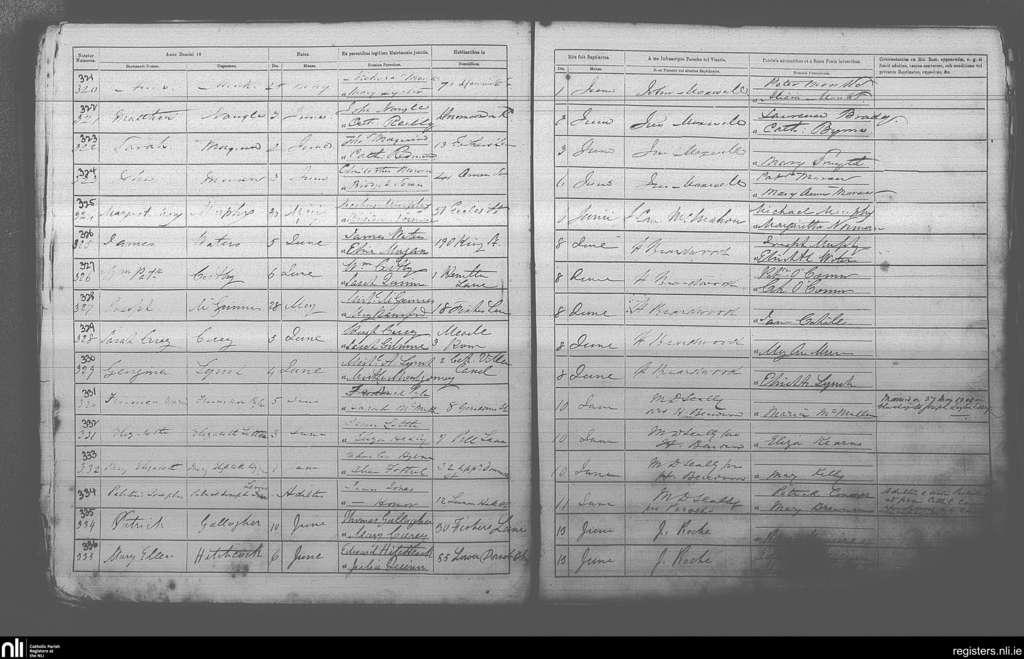 St. Michan's, Dublin city; County of Dublin; Archdiocese of Dublin. Baptisms, June 1870