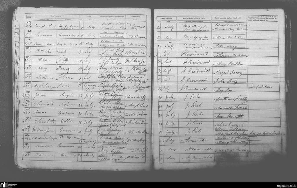 St. Michan's, Dublin city; County of Dublin; Archdiocese of Dublin. Baptisms, July 1870 to Aug. 1870