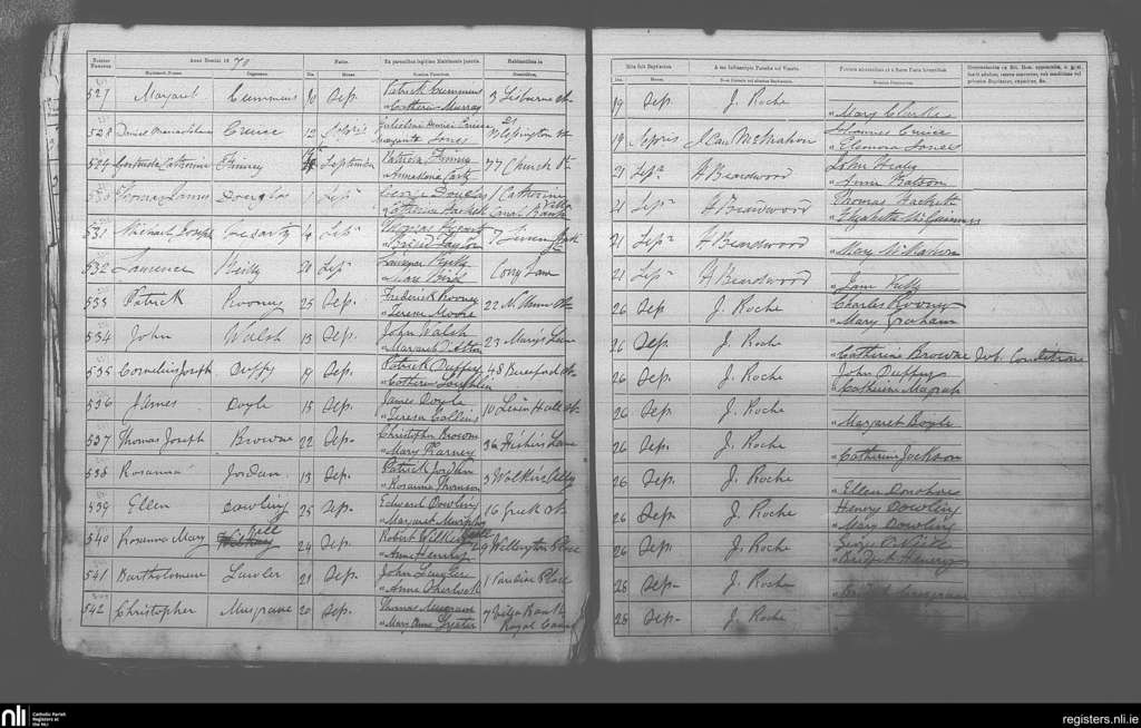 St. Michan's, Dublin city; County of Dublin; Archdiocese of Dublin. Baptisms, Sep. 1870