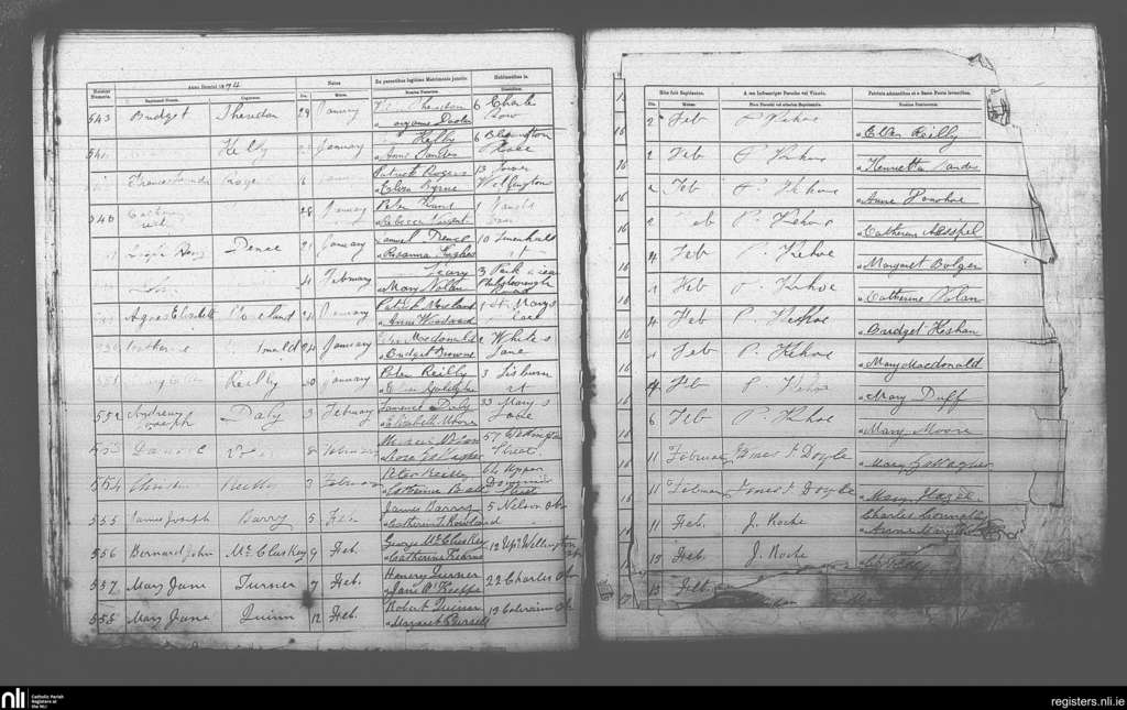 St. Michan's, Dublin city; County of Dublin; Archdiocese of Dublin. Baptisms, Feb. 1874