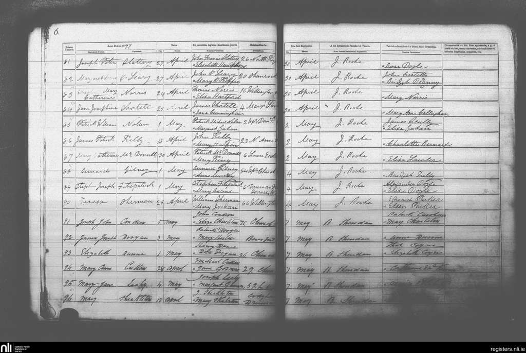 St. Michan's, Dublin city; County of Dublin; Archdiocese of Dublin. Baptisms, Apr. 1877 to May 1877