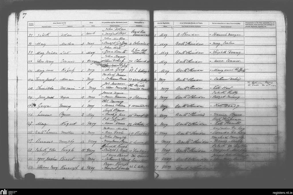 St. Michan's, Dublin city; County of Dublin; Archdiocese of Dublin. Baptisms, May 1877