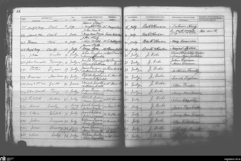St. Michan's, Dublin city; County of Dublin; Archdiocese of Dublin. Baptisms, July 1877