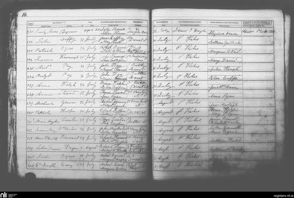 St. Michan's, Dublin city; County of Dublin; Archdiocese of Dublin. Baptisms, July 1877 to Aug. 1877