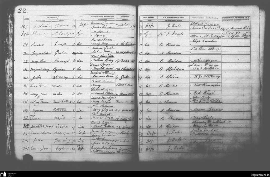 St. Michan's, Dublin city; County of Dublin; Archdiocese of Dublin. Baptisms, Sep. 1877