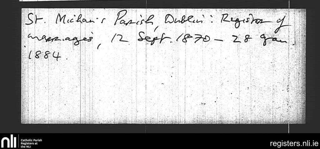 St. Michan's, Dublin city; County of Dublin; Archdiocese of Dublin. Marriages
