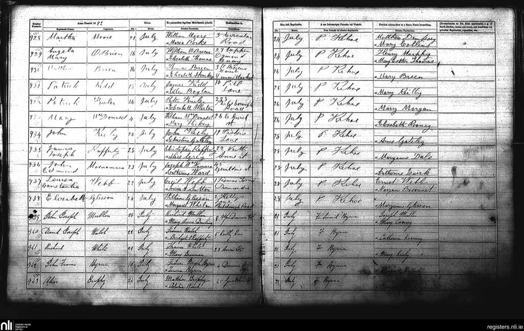 St. Michan's, Dublin city; County of Dublin; Archdiocese of Dublin. Baptisms, July 1882
