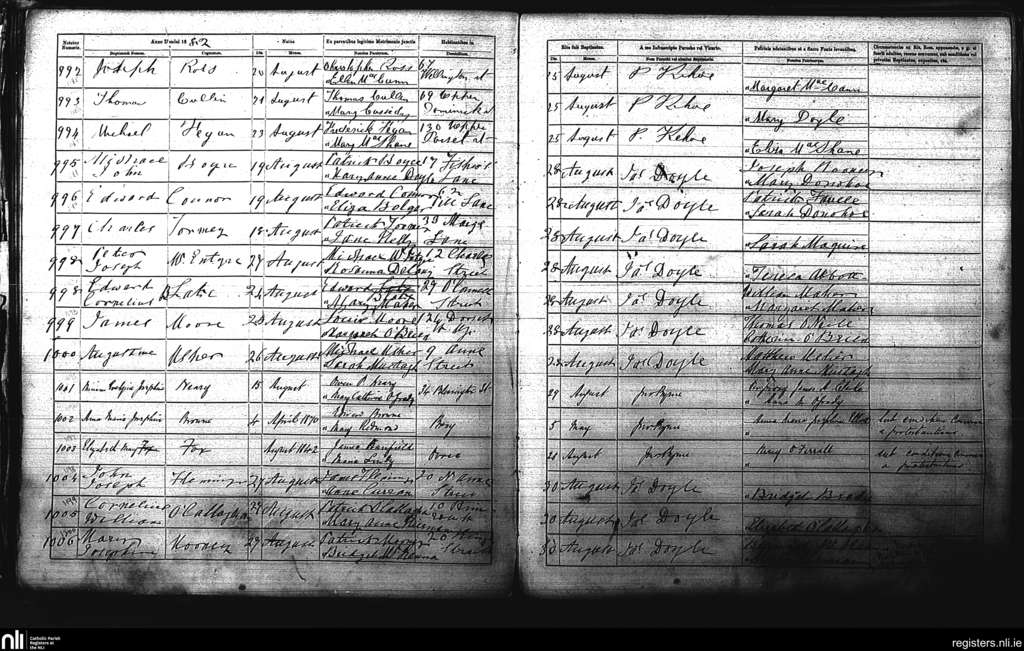 St. Michan's, Dublin city; County of Dublin; Archdiocese of Dublin. Baptisms, May 1882 to Aug. 1882