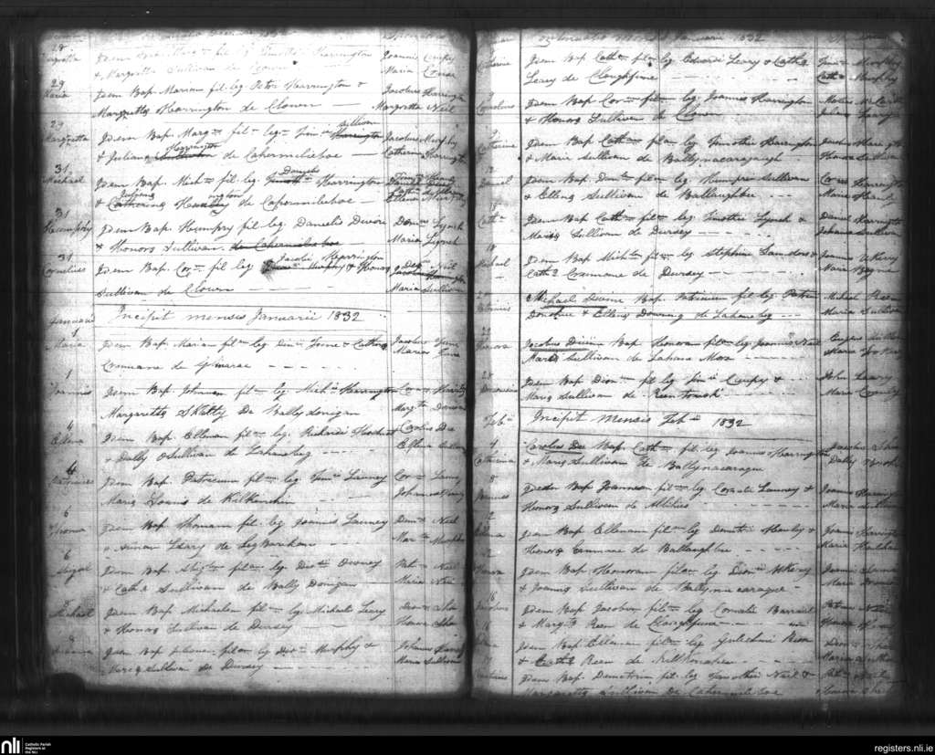 Allihies; County of Cork; Diocese of Kerry. Baptisms, Dec. 1831 to Feb. 1832