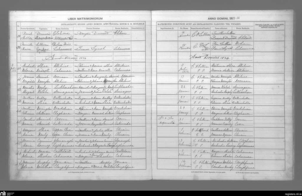 Allihies; County of Cork; Diocese of Kerry. Marriages, July 1872 to Feb. 1874