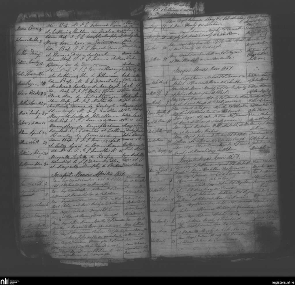 Eyeries; County of Cork; Diocese of Kerry. Baptisms, Mar. 1851 to June 1851