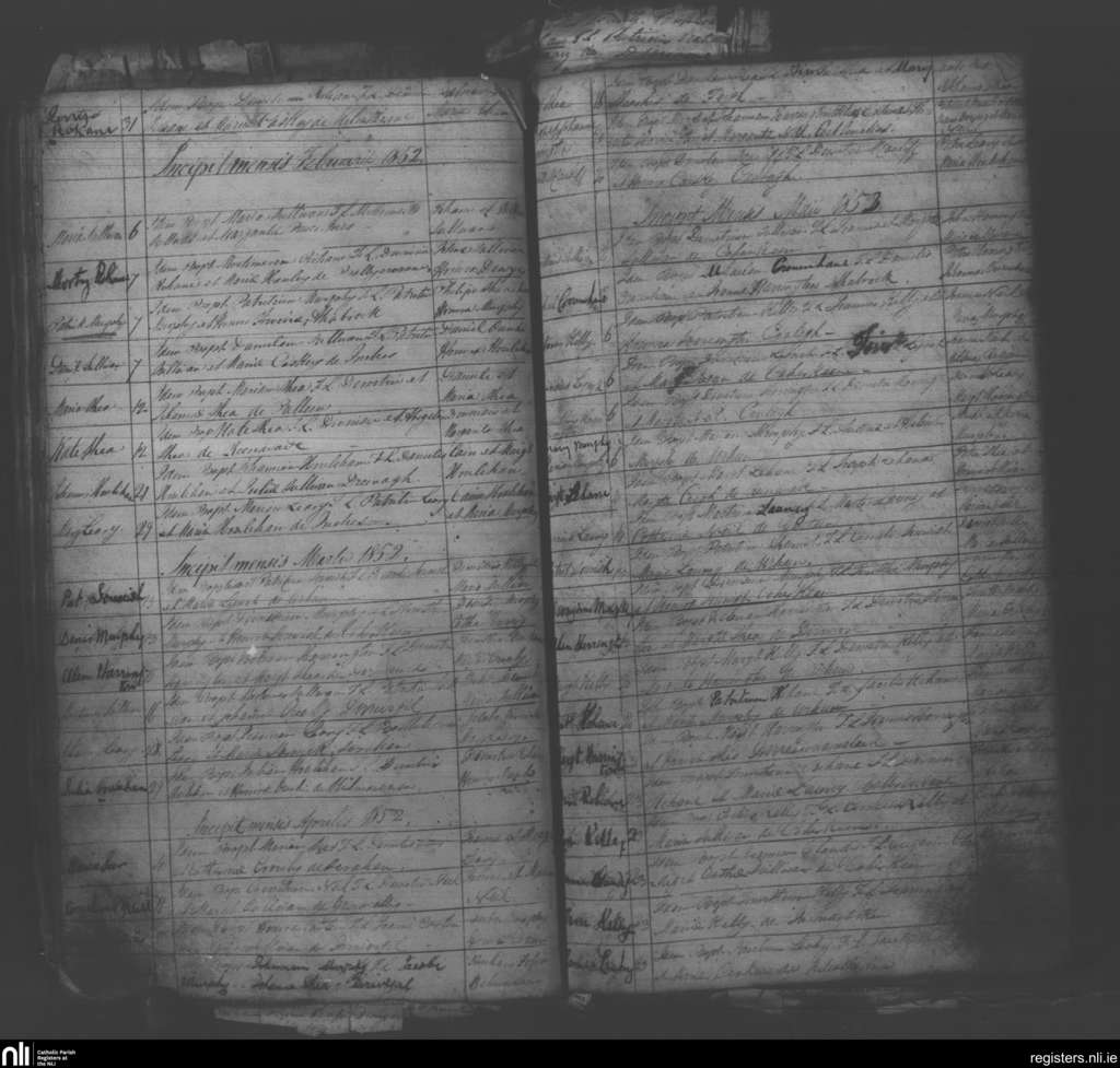 Eyeries; County of Cork; Diocese of Kerry. Baptisms, Jan. 1852 to May 1852