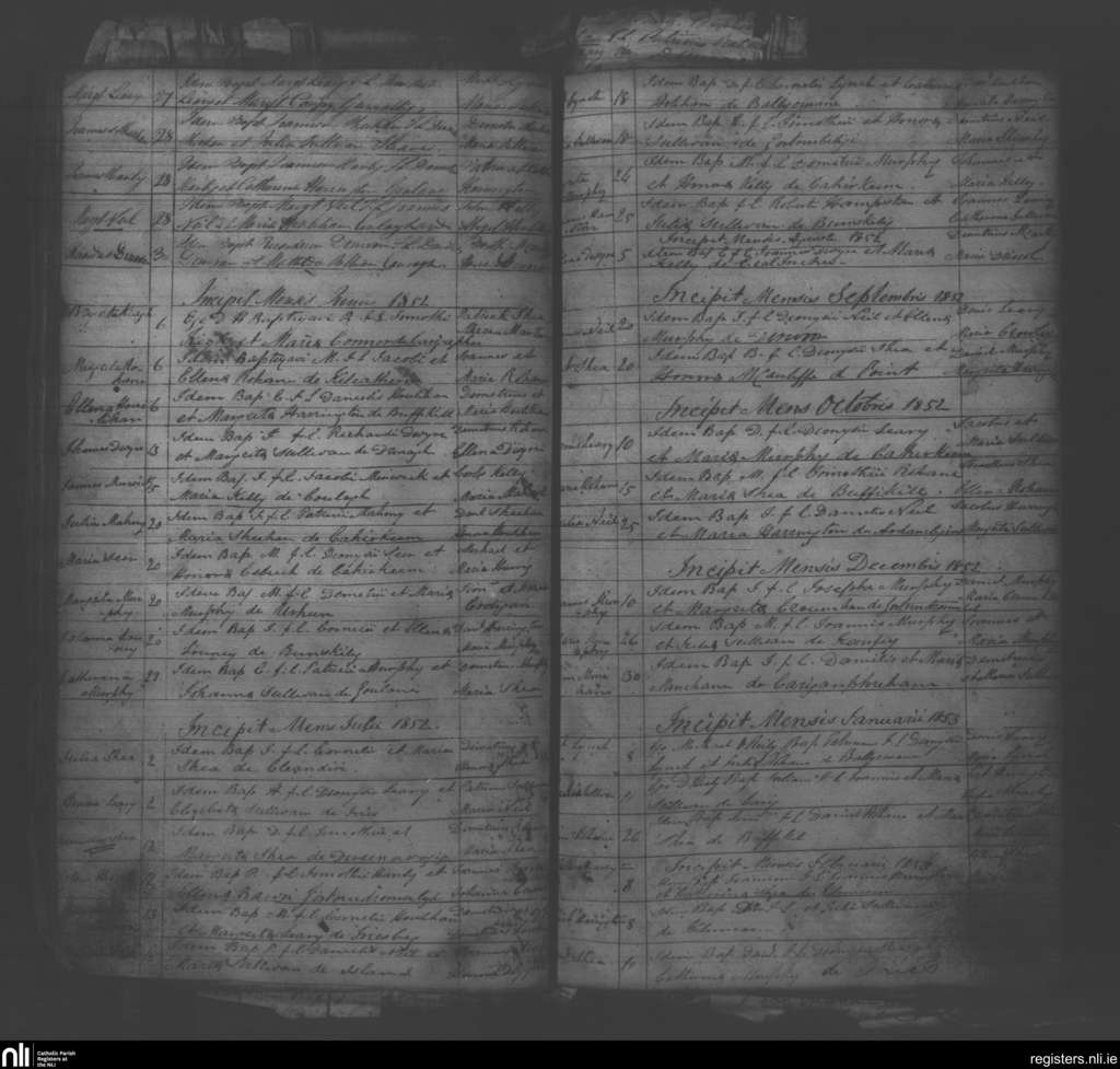 Eyeries; County of Cork; Diocese of Kerry. Baptisms, May 1852 to Feb. 1853