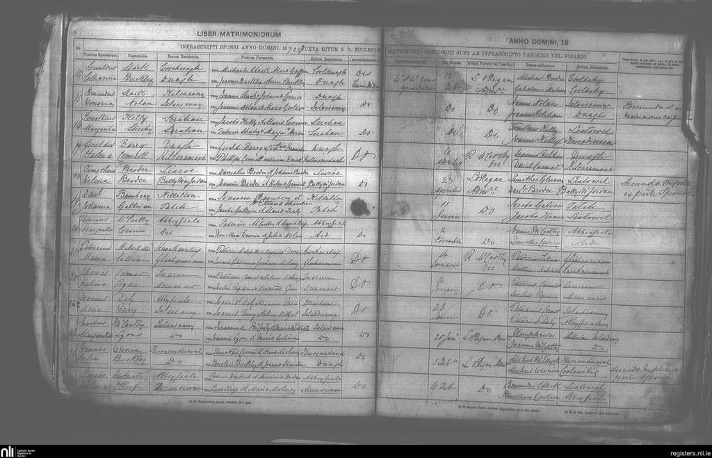 Duagh; County of Cork; Diocese of Kerry. Marriages, Feb. 1872 to Feb. 1873