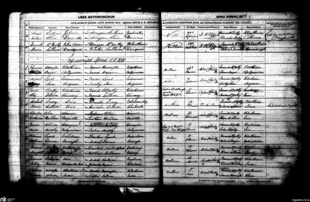Eyeries; County of Cork; Diocese of Kerry. Marriages, Sep. 1873 to May 1874