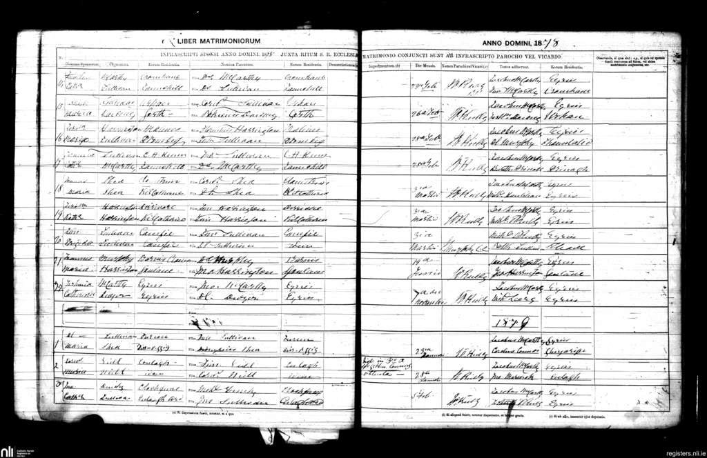 Eyeries; County of Cork; Diocese of Kerry. Marriages, Feb. 1878 to Feb. 1879