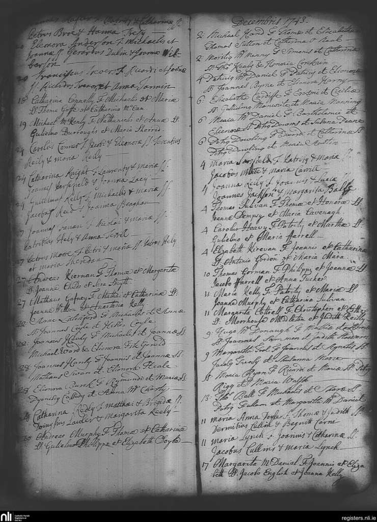 St. Nicholas', Dublin city; County of Dublin; Archdiocese of Dublin. Baptisms, Nov. 1743 to Dec. 1743