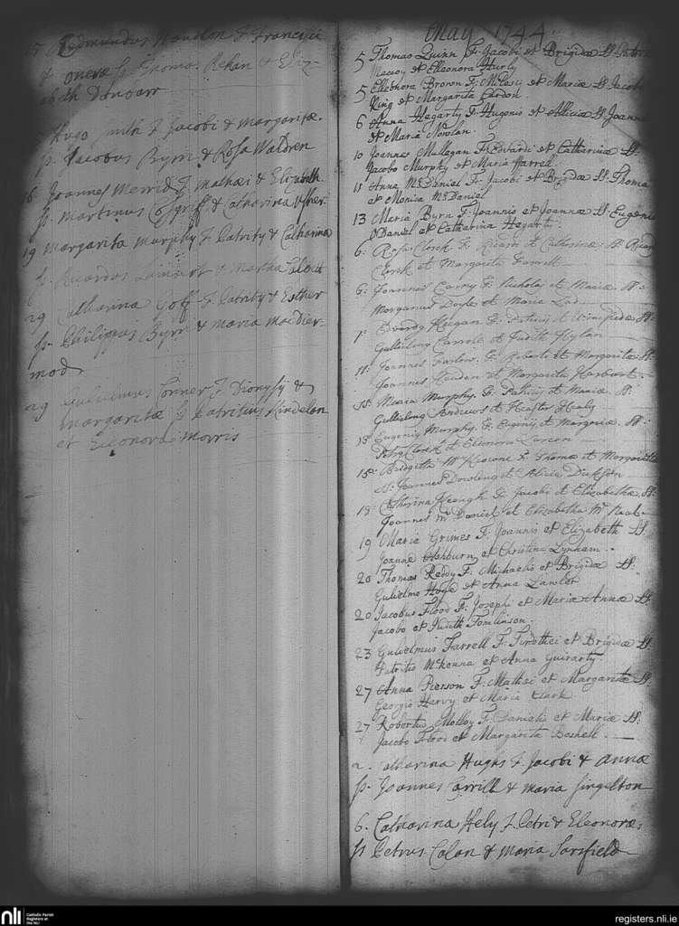 St. Nicholas', Dublin city; County of Dublin; Archdiocese of Dublin. Baptisms, Apr. 1744 to May 1744