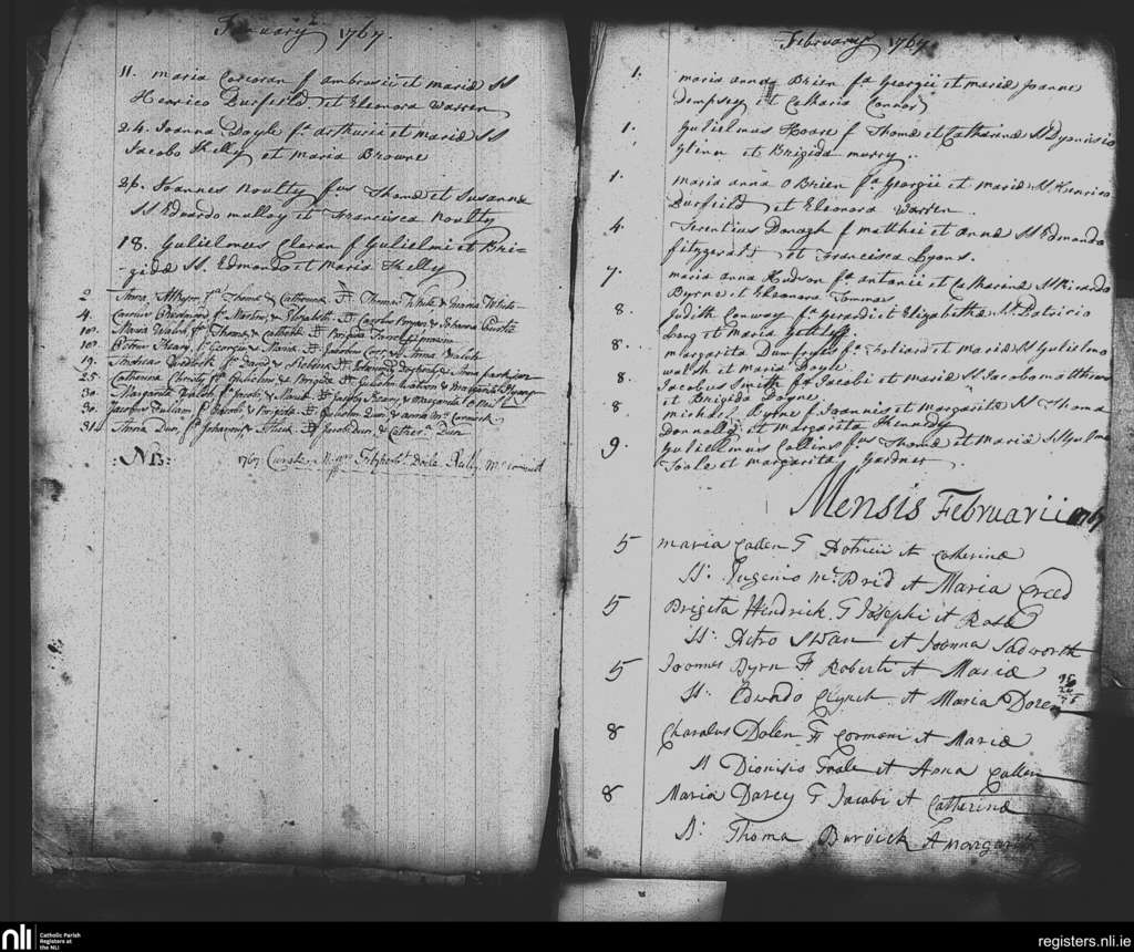 St. Nicholas', Dublin city; County of Dublin; Archdiocese of Dublin. Baptisms, Jan. 1767 to Feb. 1767
