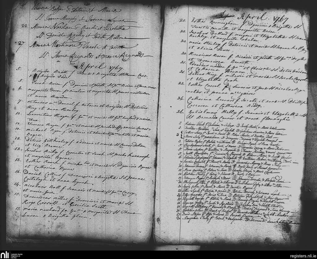 St. Nicholas', Dublin city; County of Dublin; Archdiocese of Dublin. Baptisms, Mar. 1767 to Apr. 1767