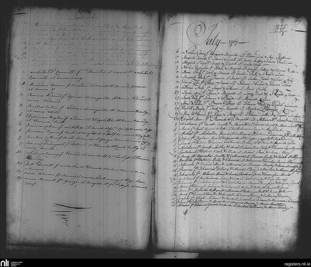St. Nicholas', Dublin city; County of Dublin; Archdiocese of Dublin. Baptisms, June 1767 to July 1767