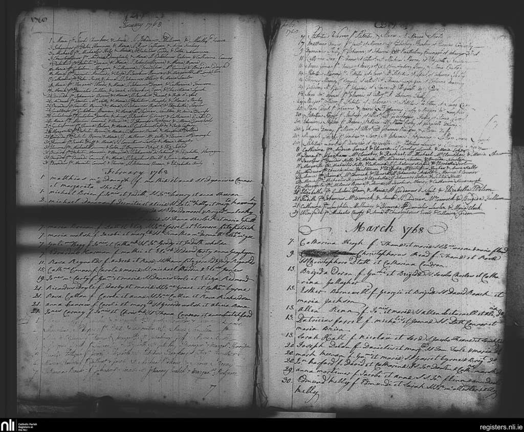 St. Nicholas', Dublin city; County of Dublin; Archdiocese of Dublin. Baptisms, Jan. 1768 to Mar. 1768