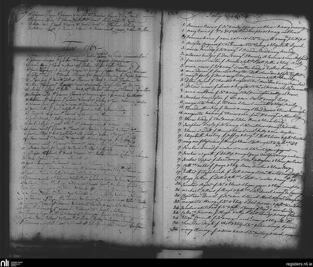 St. Nicholas', Dublin city; County of Dublin; Archdiocese of Dublin. Baptisms, June 1768 to July 1768