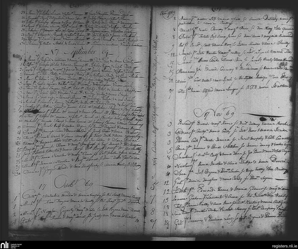 St. Nicholas', Dublin city; County of Dublin; Archdiocese of Dublin. Baptisms, Aug. 1769 to Nov. 1769