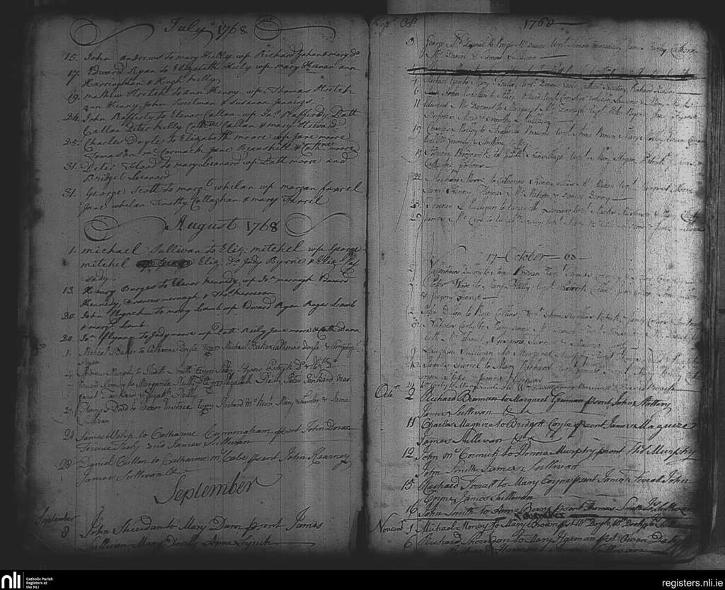 St. Nicholas', Dublin city; County of Dublin; Archdiocese of Dublin. Marriages, July 1768 to Nov. 1768