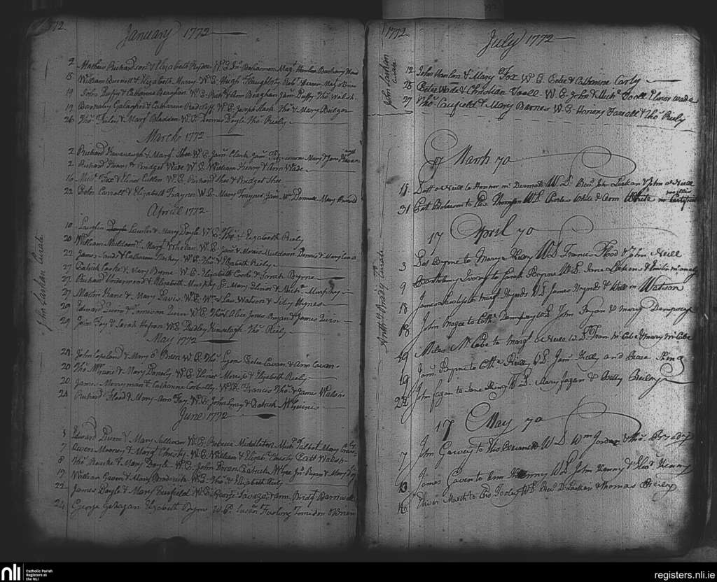 St. Nicholas', Dublin city; County of Dublin; Archdiocese of Dublin. Marriages, Mar. 1770 to July 1772