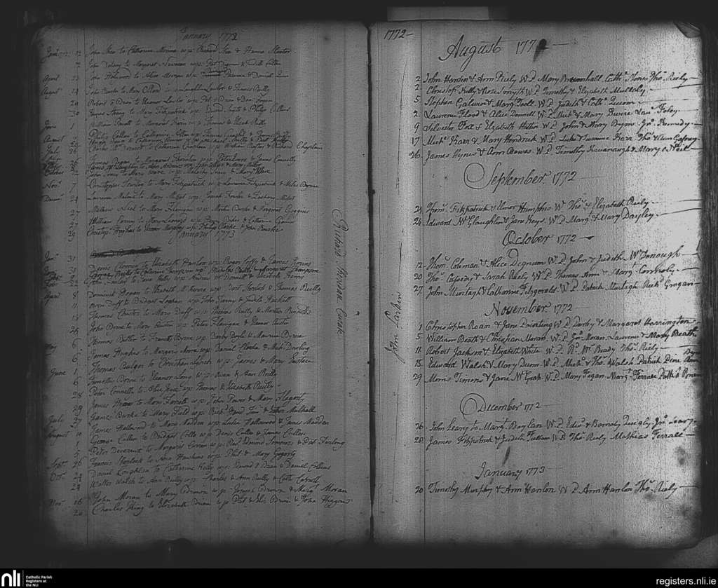 St. Nicholas', Dublin city; County of Dublin; Archdiocese of Dublin. Marriages, Jan. 1772 to Nov. 1773