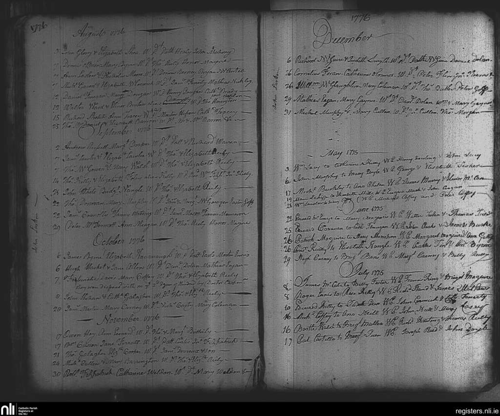 St. Nicholas', Dublin city; County of Dublin; Archdiocese of Dublin. Marriages, May 1775 to Dec. 1776