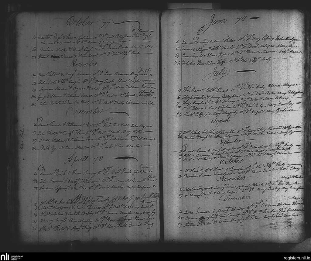 St. Nicholas', Dublin city; County of Dublin; Archdiocese of Dublin. Marriages, Oct. 1777 to Dec. 1778