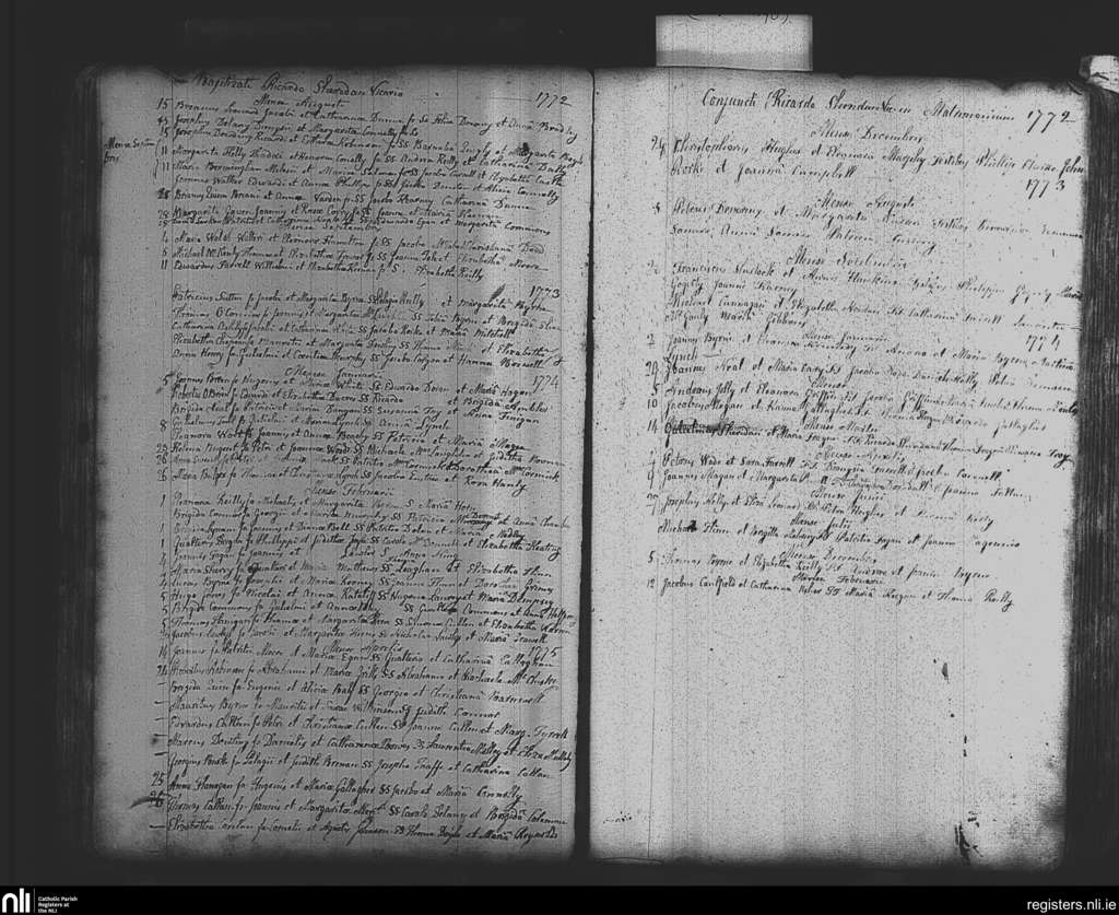 St. Nicholas', Dublin city; County of Dublin; Archdiocese of Dublin. Baptisms, Marriages, Aug. 1772 to Dec. 1774