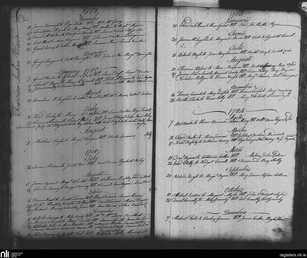 St. Nicholas', Dublin city; County of Dublin; Archdiocese of Dublin. Marriages, Nov. 1779 to Dec. 1784