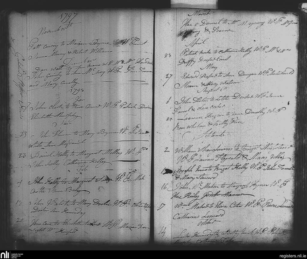 St. Nicholas', Dublin city; County of Dublin; Archdiocese of Dublin. Marriages, Nov. 1797 to Oct. 1798