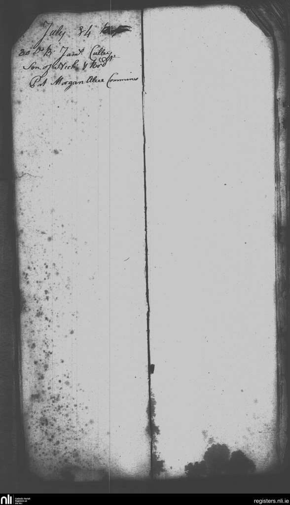 St. Nicholas', Dublin city; County of Dublin; Archdiocese of Dublin. Baptisms, July 1784