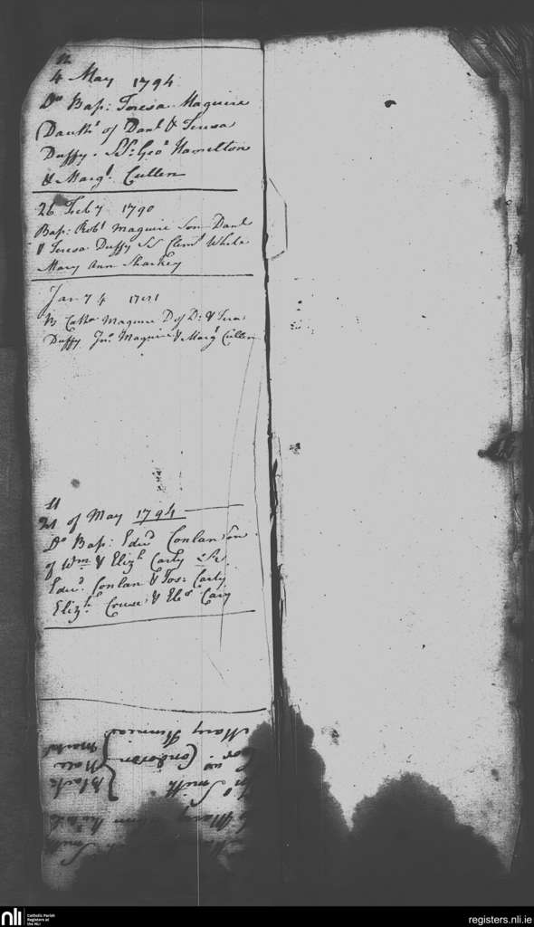 St. Nicholas', Dublin city; County of Dublin; Archdiocese of Dublin. Baptisms, Feb. 1790 to May 1794